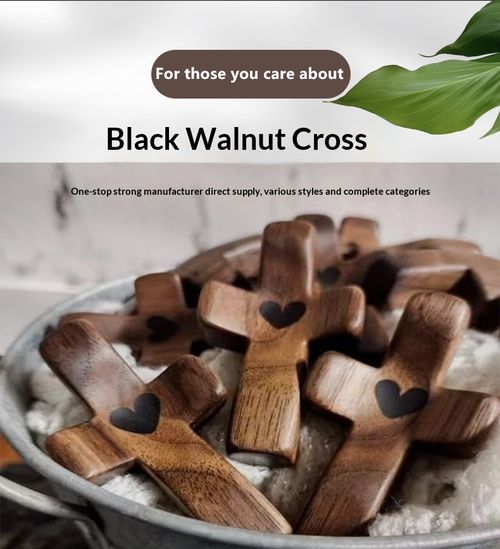 Thumb-sized cross-shaped walnut wood handle piece