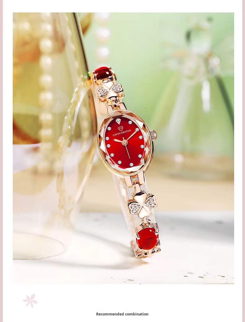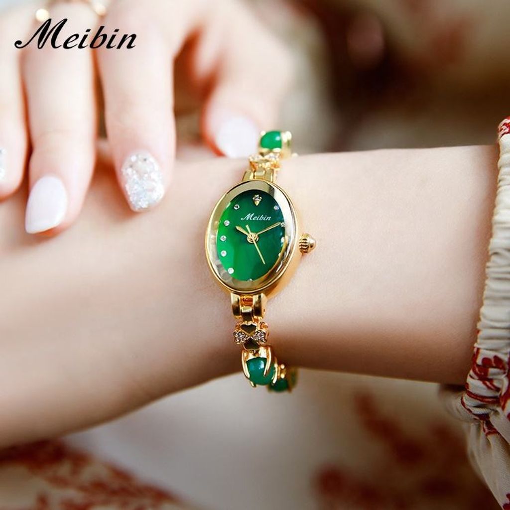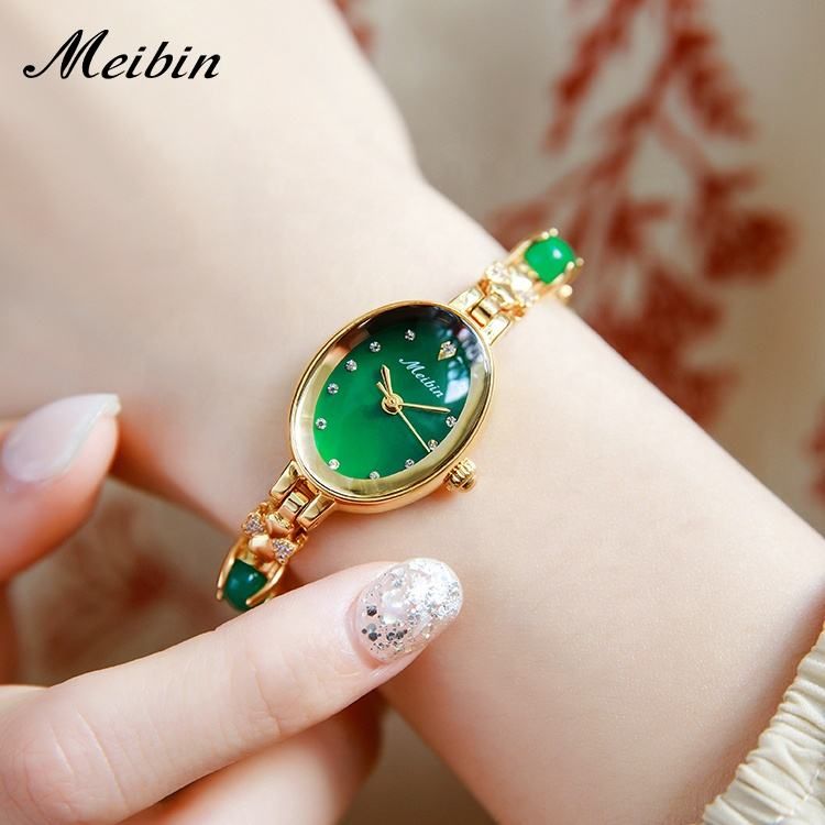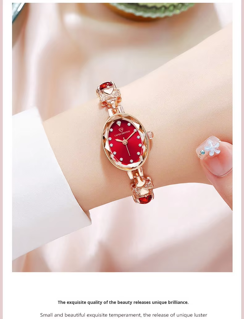 Internet Celebrity Women's Quartz Watch Emerald-Decorated Luxury Stainless Steel Bracelet Fashionable One-Piece Waterproof