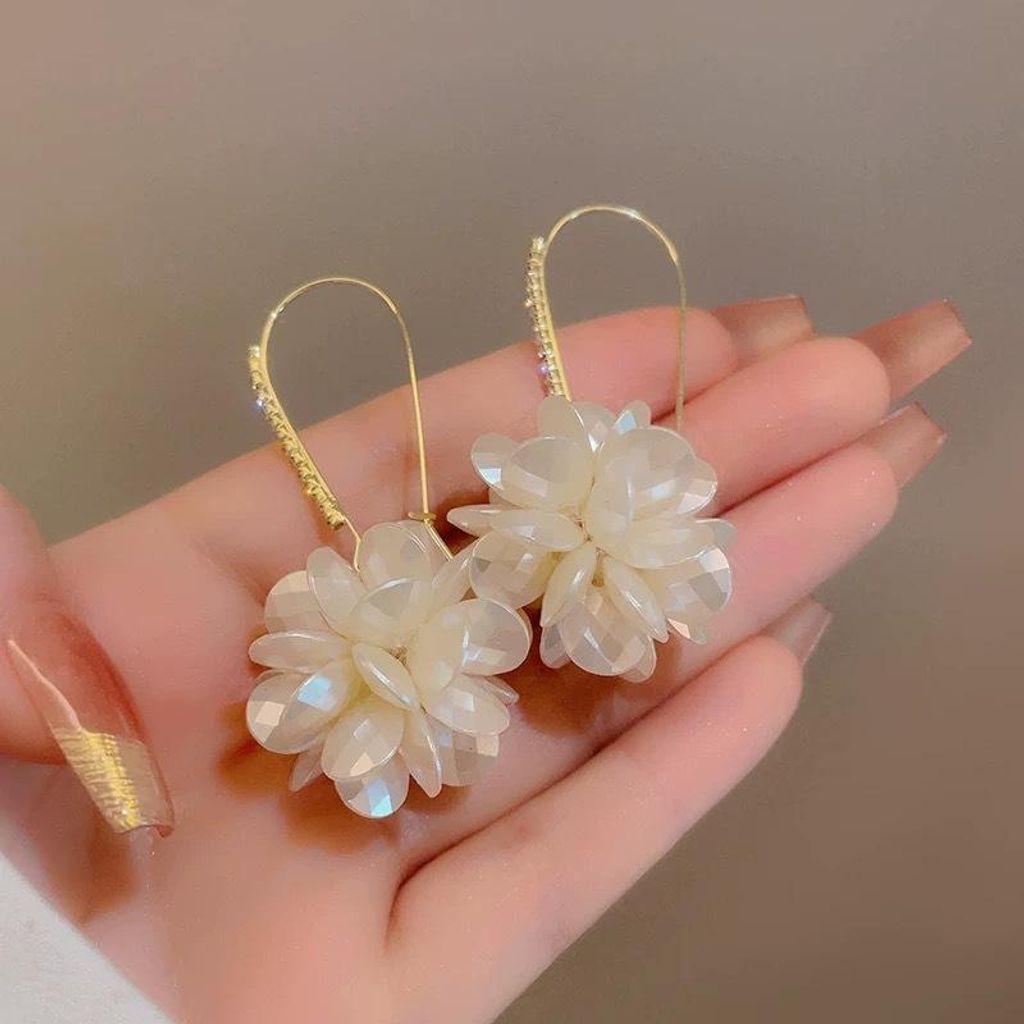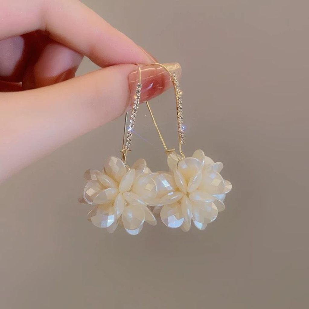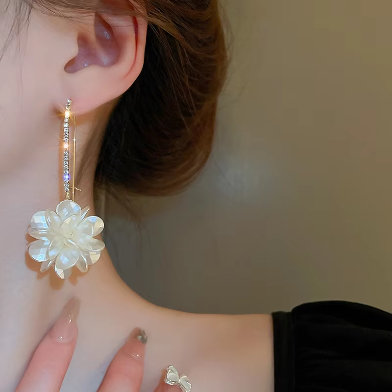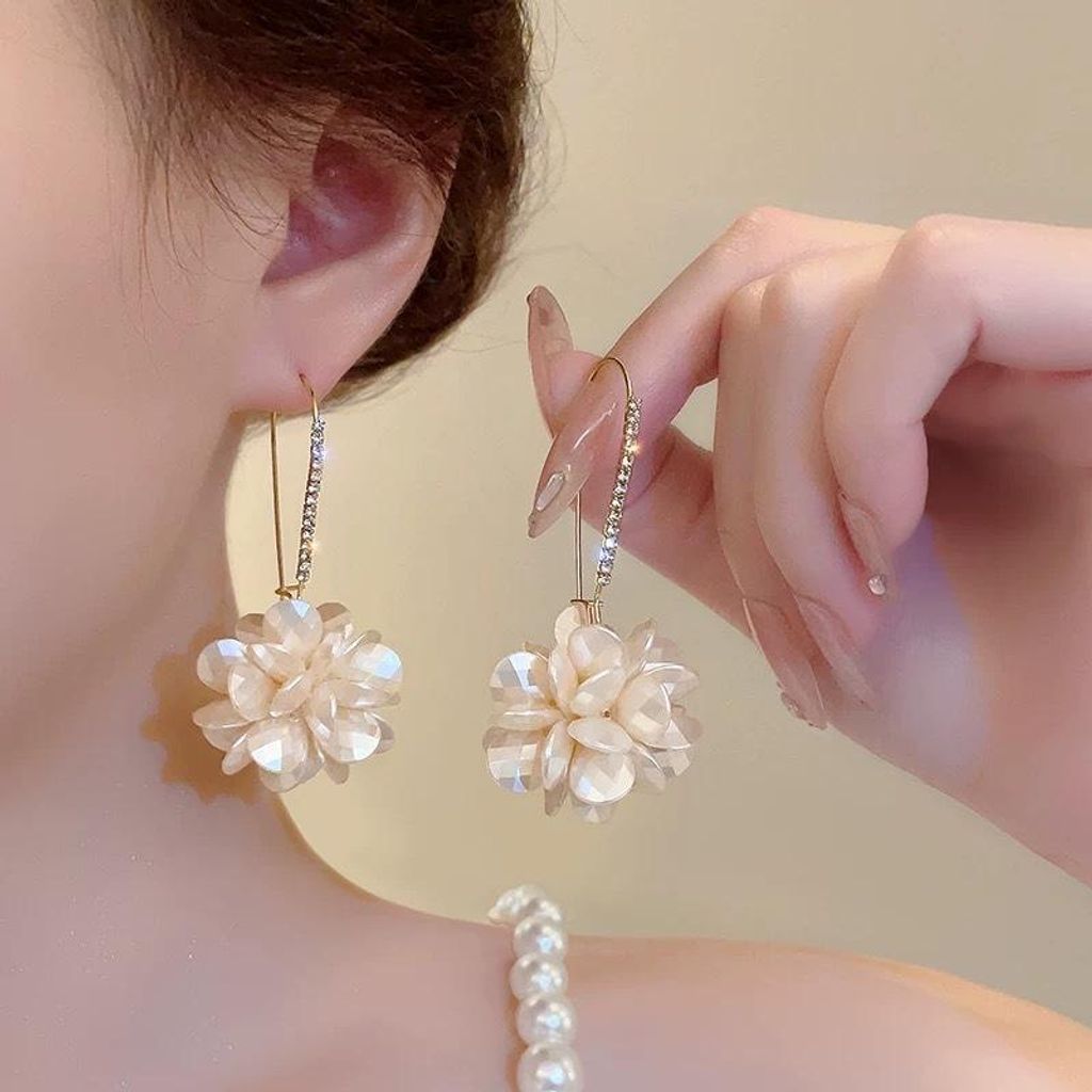 Korea Fashion Zircon Circle Hoop Earring Crystal Flower High-Grade Bling Bling Flower Drop Earrings